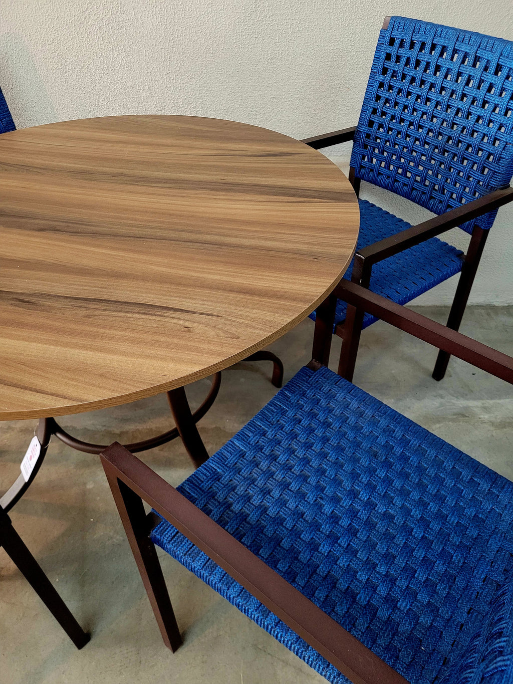 Estrutura do pé da mesa e das cadeira de Aluminio com pintura eletrostatica cor marrom acetinado